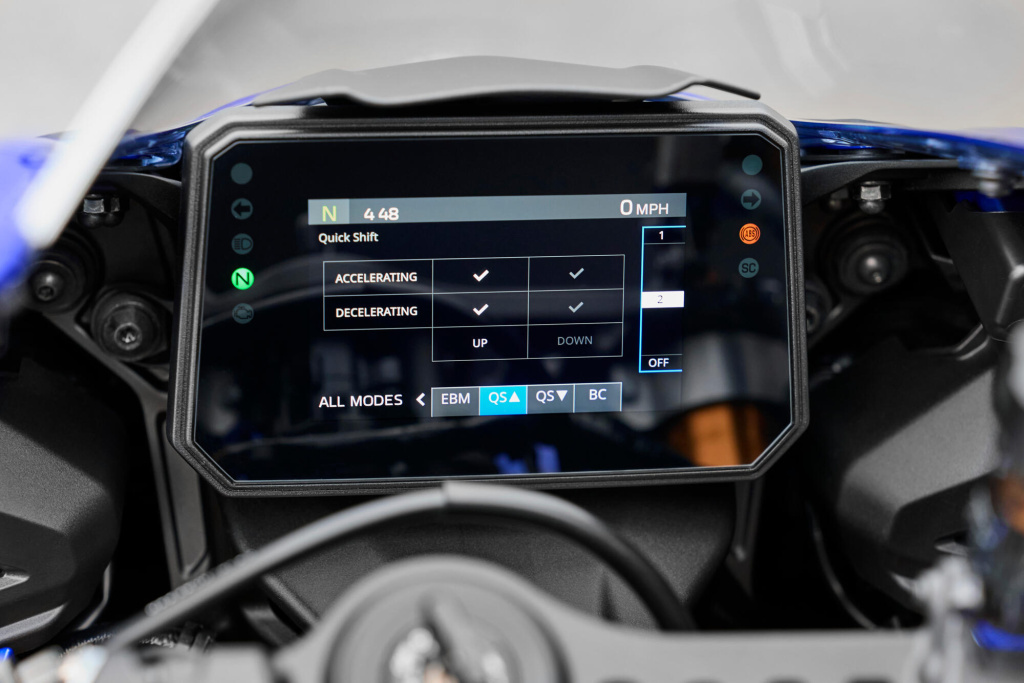 - Pomocné systémy pro jezdce citlivé na náklon, včetně kontroly trakce (TCS), kontroly skluzu (SCS), kontroly brzd (BC).